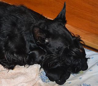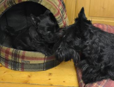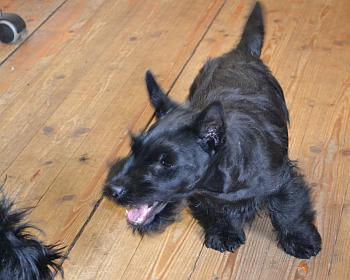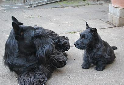 | 05.05.2012 Our little boy has moved into his new family. Here he is living with Scottie girl Jock. |